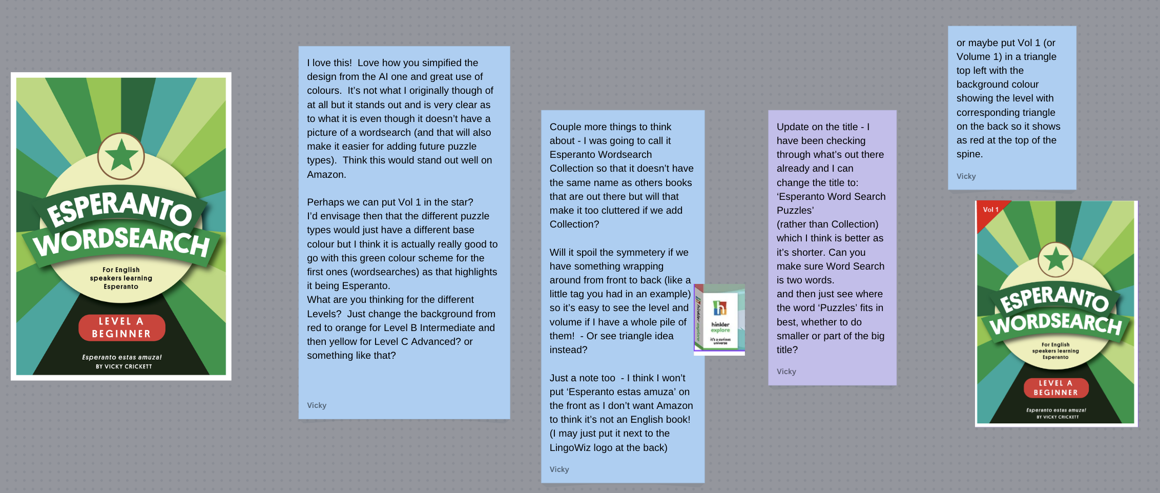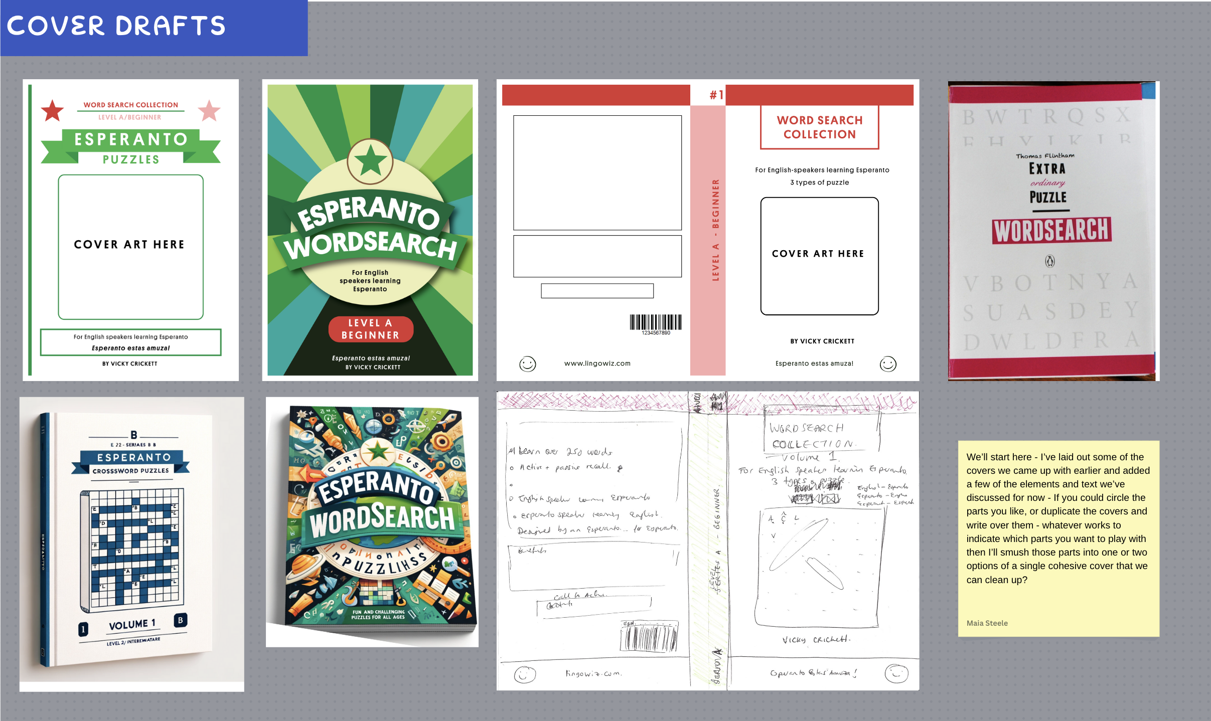 I worked with the author of these booklets which are aimed to help students learning to speak Esperanto, and we came up with not only this first edition cover, but a framework of designs that would work across multiple editions, skill levels, and puzzle types. The first booklet is now available on Amazon.com